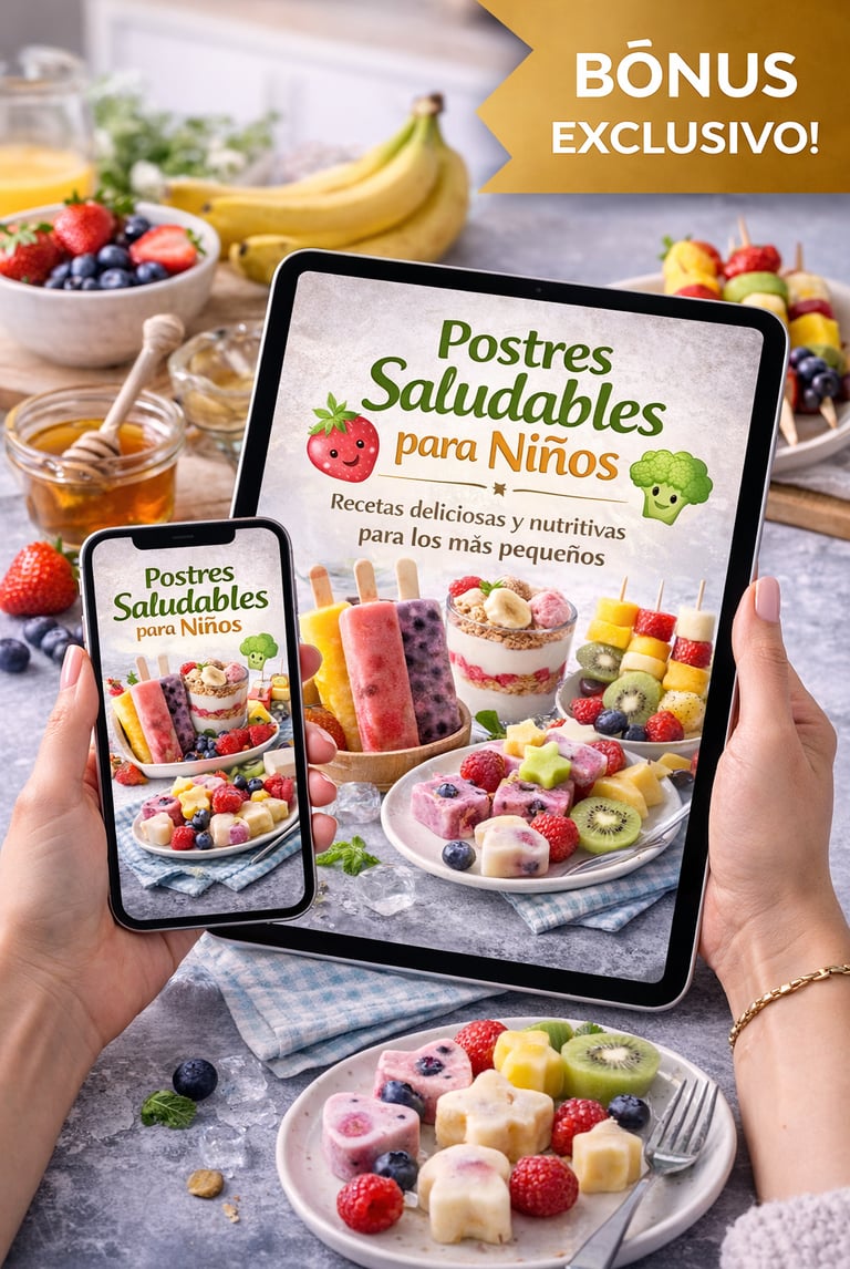 👉 Con el libro Postres Saludables para Niños, aprenderás a preparar recetas nutritivas, deliciosas y divertidas usando ingredientes simples y económicos, perfectas tanto para tu familia como para vender.